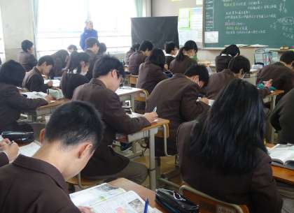 3限の授業の様子です。上から、2組 国語、英語(分割授業)、2年3組 社会 です。