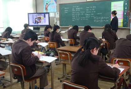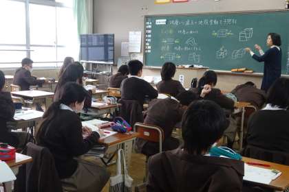 1限の授業の様子です。上から、2組 英語、3組 国語、4組 理科 です。