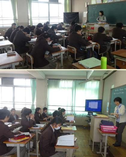 3限の授業の様子です。上から、2年2組 国語、英語(分割授業)、2年3組 音楽、1組 です。