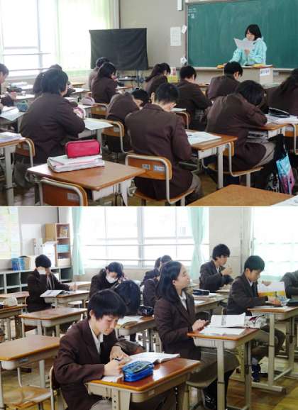 3限の授業の様子です。上から、2年2組 国語、英語(分割授業)、2年3組 理科、1組 英語 です。