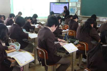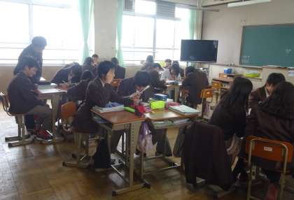 1限の授業の様子です。上から、2組 英語、3組 数学、4組 理科 です。
