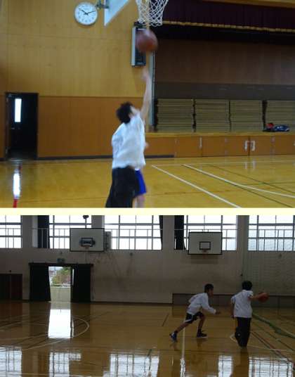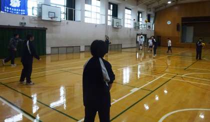 午前中の部活動の様子です。体育館では、バレーボール部とバスケットボール部が練習していました。