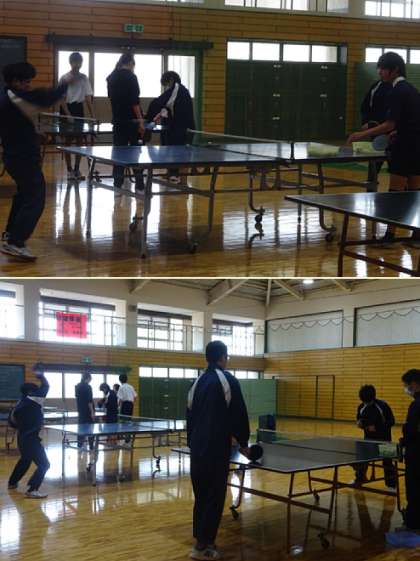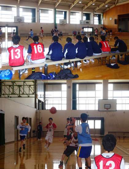 午前中は、部活動の様子です。バスケットボール部(上)、卓球部(下)です。バスケットボール部は練習試合をしていました。