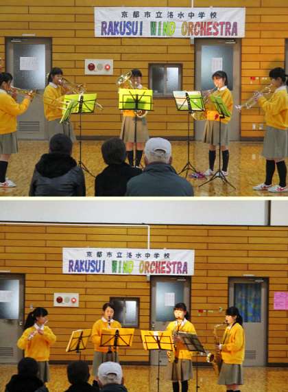 吹奏楽部の『Spring コンサート 〜アンサンブル〜』の様子です。「ブラスファミリー」「ヘンジンズ」「Wマウンテン」「パーカッションズ」の4グループの演奏です。