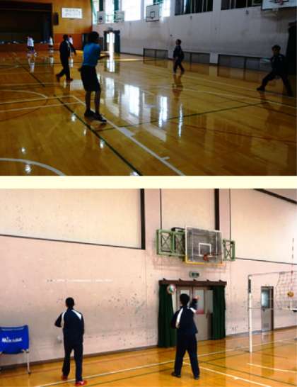 午前中は、バレーボール部とバスケットボール部が練習をしていました。