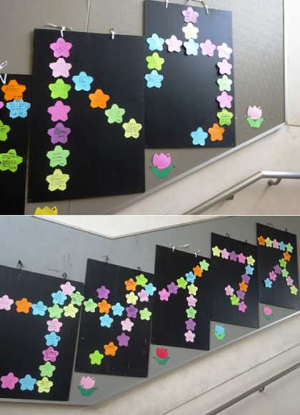 式が終わり、担任の先生を先頭に教室へ向かいました。