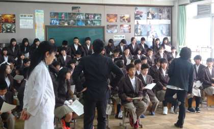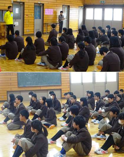 各学年の集会の様子です。上から、1年、2年、3年 です。