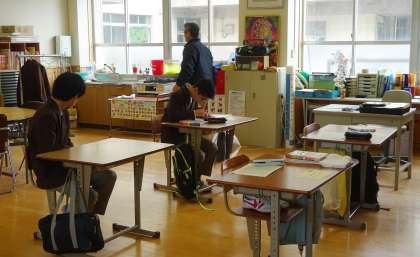 1組の学活の様子です。2,3年生のみで、1年生は交流学級へ行っていました。