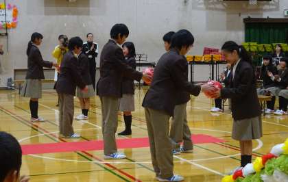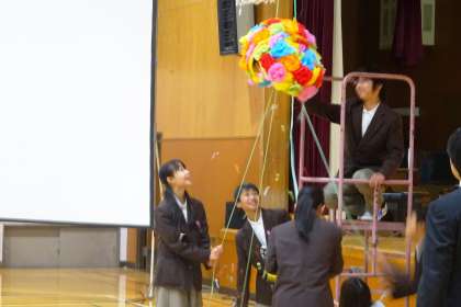 くす玉割り と 記念品贈呈 の様子です。
