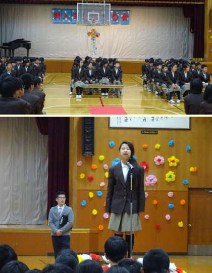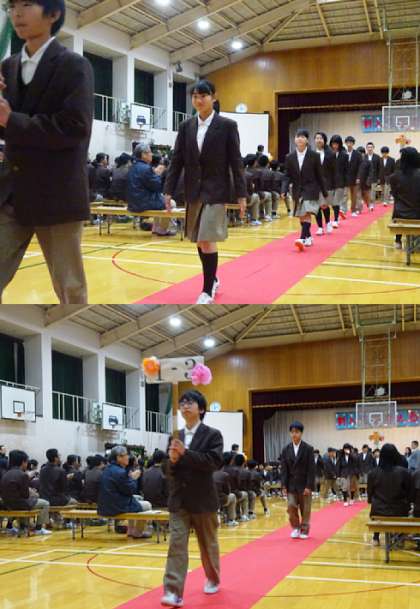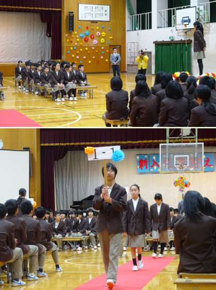 迎える会は新入生誓いの言葉へと続き、終始和やかな雰囲気の中で、会が行われました。1年生は楽しかったでしょうか。1年後に先輩達のように後輩をしっかり迎えられるように成長していってください。