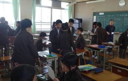 2限の授業の様子です。上から、2組 美術、3組 社会、4組 英語 です。