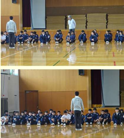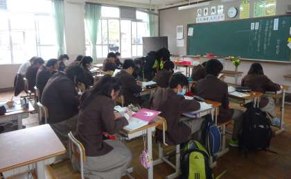 3限の授業の様子です。落ち着いて授業を受けています。上から、2組 国語、3組、4組 体育 です。