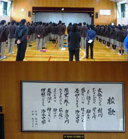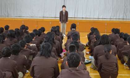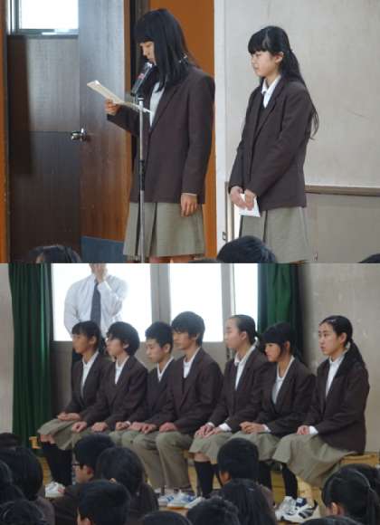 本日の6限、学級役員の前期の認証式が行われ生徒会本部生徒の司会で進められました。認証式は生徒会長の挨拶に始まり、各委員(代表、体育、環境、保健安全、図書、選挙管理、学校祭)に校長先生から認証状が渡されました。その後、各委員長からの挨拶、校長先生のお話と続きました。校長先生からは「新しいことに取り組んでほしい」と新役員に話をされました。