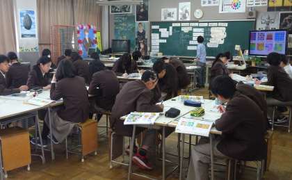 3限の授業の様子です。上から、2組 美術、3組 数学、4組 国語 です。