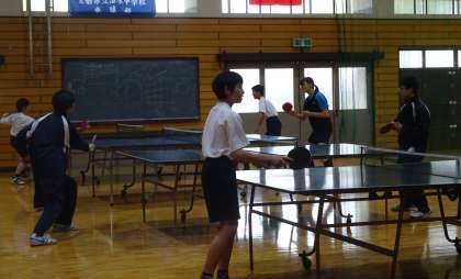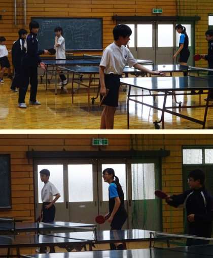 「私たち卓球部は4月30日に山科中学校にて個人の予選、そして 5月3日には横大路体育館にて団体戦が行われます。これらの試合に勝ち進むと、5月4日に洛星中学校での個人、団体の決勝大会に出場することができます。私たちはこれまで自分たちの目標をしっかりと決め、それを達成するために練習メニューを自分たちで考えたり、先生や仲間にアドバイスをもらうなど、様々な工夫をし、苦手を克服、得意なことを伸ばす努力をしてきました。これまでの練習の成果を発揮できればと思います。どうぞ応援よろしくお願いします。」(春体激励会決意表明より)