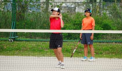 「私たちソフトテニス部は4月30日に西院テニスコートで個人戦、5月3日に四条中学校で団体戦があります。私たちの目標は、まずは1回戦の対戦校「藤森中学校」に確実に勝つことです。2回戦に進めばシード校であり、夏季大会で負けてしまった樫原中学校と対戦することができます。今の自分たちの力がどこまで通用するか、思い切って挑戦できる絶好の機会です。最後の夏に向けて、この春の大会を思いっきり楽しみ、この舞台に立てていることを満喫しながら、最後の一球まで大切に頑張ってきます。みなさん、応援よろしくお願いします。」(春体激励会決意表明より)