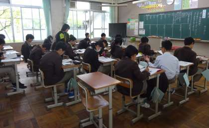 1限の授業の様子です。上から、2組 社会、3組 国語、4組 理科 です。