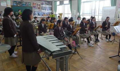 吹奏楽部の様子です。吹奏楽部は呉竹文化センターで行われる「伏見吹奏楽の集い」に向けて頑張っています。