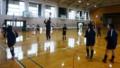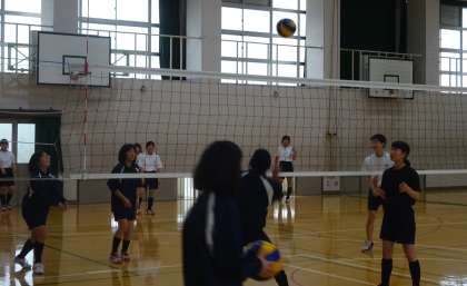 「私たち女子バレー部は、5月4日に二条中学校で四条中学校と対戦します。私たちは2年生が多いので、まだまだチームとしての経験は浅いですが、日頃の練習の成果を発揮できるよう、頑張りたいと思います。応援よろしくお願いします。」(春体激励会決意表明より)