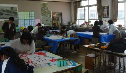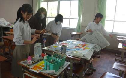 学級旗制作3日目です。だんだん学級旗ができあがってきました。完成が楽しみです。よろしくお願いします。