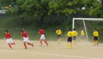 本日、サッカー部は附属桃山中学校で3回戦を行い、凌風中学校と対戦しました。1点を先制されましたが、同点に追いつき前半を1対1で折り返しました。