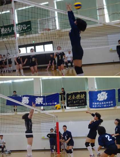 本日、女子バレーボール部は二条中学校にて、1回戦を行い四条中学校と対戦しました。