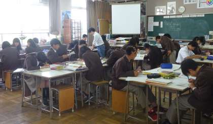 3限の授業の様子です。上から、2組 美術、3組 数学、4組 国語 です。