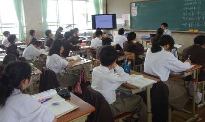 1限の授業の様子です。上から、2組 英語、3組 数学、4組 国語 です。