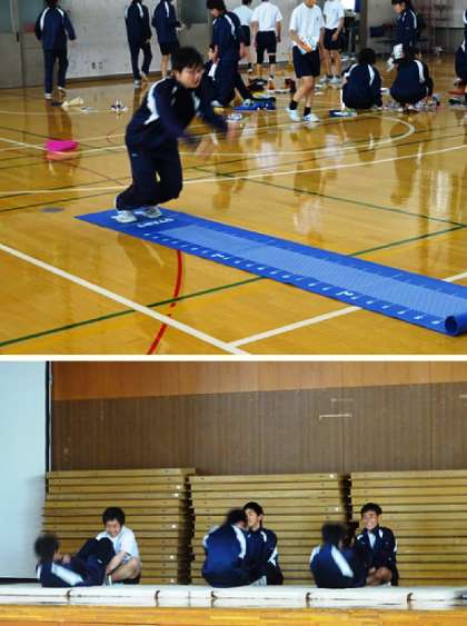 3限の授業の様子です。上から、2組、3組 体育、4組 数学 です。