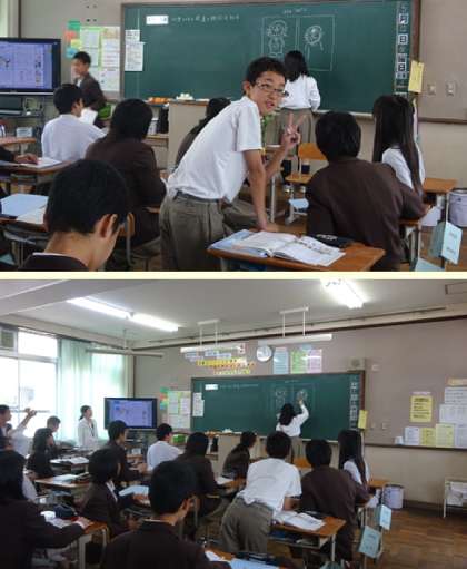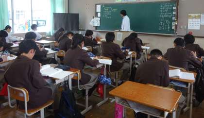 3限の授業の様子です。上から、2組 理科、3組 家庭、4組 数学 です。