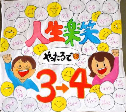 学級旗です。上から、3年4組、3年3組、3年2組です。