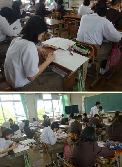 4限の授業の様子です。上から、2組 理科、3組 数学、4組 英語 です。