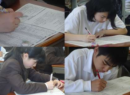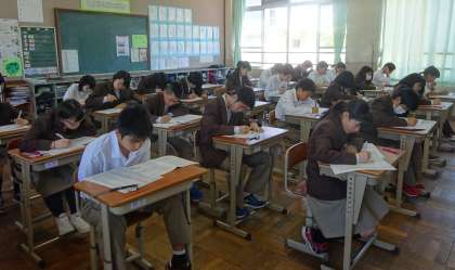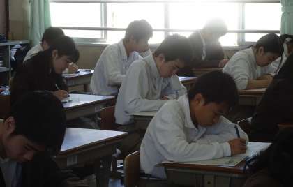 2年の3限の社会のテストの様子です。4組 です。