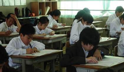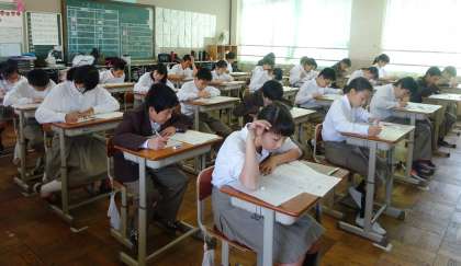 1年2限の理科のテストの様子です。3組 です。