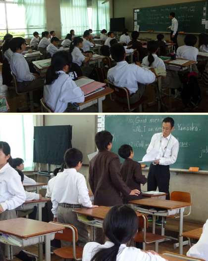 2限の授業の様子です。上から、2組、3組 体育、4組 英語 です。