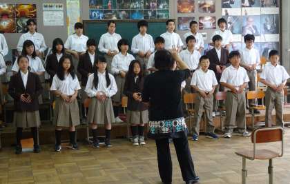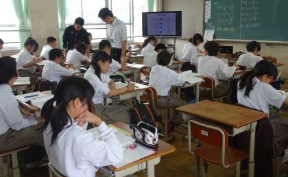 2限の授業の様子です。上から、2組 音楽、3組 国語、4組 数学 です。