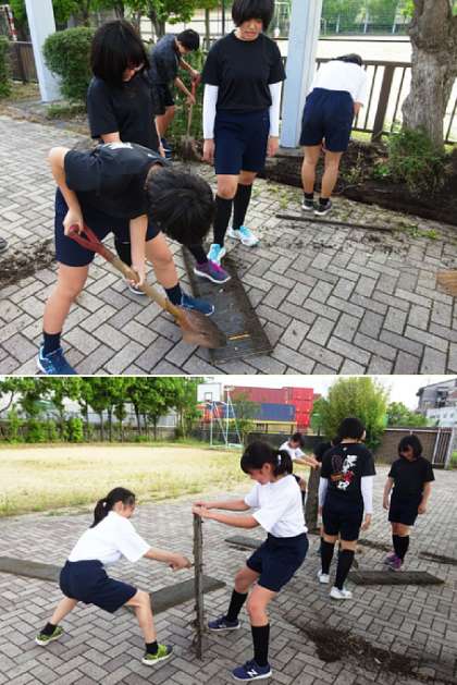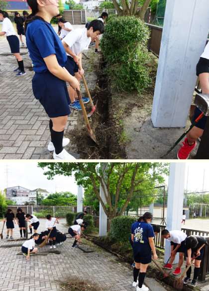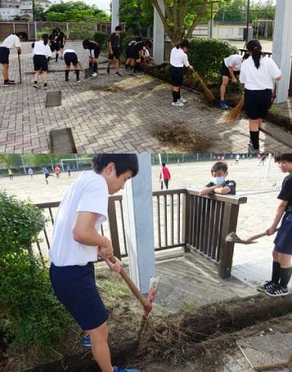 本日、バレーボール部は早く練習が終了したので、グランド周りの溝掃除をしてくれていました。ありがとう。