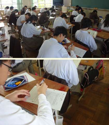 今日は朝読書の時間に一読一筆をしました。身近な文章を読んで、1,2年生は感想文、3年生は意見文を書いていました。(写真は、2年生の様子です)