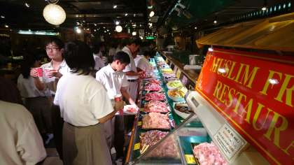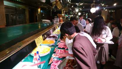 昼食会場(カーネルステーション銀座店)に到着し、昼食が始まりました。焼き肉の食べ放題です。