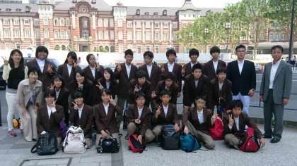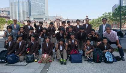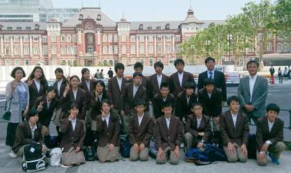 東京駅に到着し、東京駅をバックにクラス写真を撮りました。
