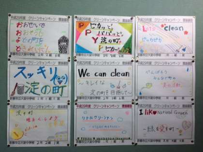 さて、定期テストが終わる23日(金)は、午後「PSTクリーンキャンペーン」を行います。各クラスでキャンペーン標語を作成してもらい、そのいくつかが掲示版に貼っていましたので紹介します。どれも力作ですね!!