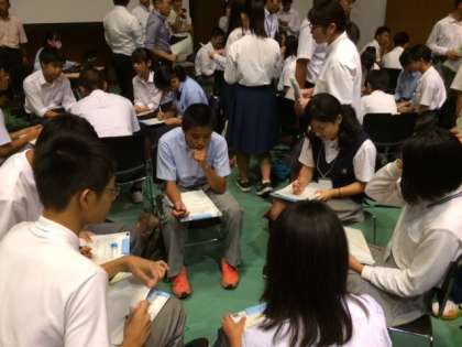 テーマが中学生としての本質に迫る、かつ難しいテーマでしたが、本当に熱心で活発な意見がでて、「さすが各校の代表者が集まった会議だ!」と思う内容の濃い会議となりました。大淀中の代表生徒も、グループ討議等で積極的に意見交換してくれていました。
