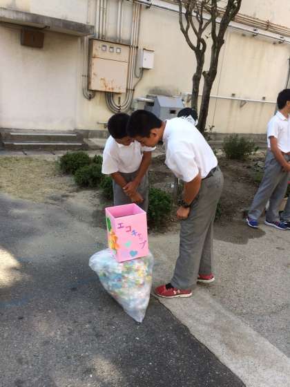 毎月のエコキャップデーは、15日・16日ですが、9月15日(金)は定期テスト、16日は土曜日ということで、今月は10日前倒しで、本日と明日実施しています。