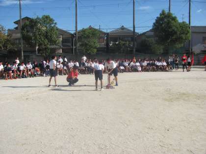色別対抗リレーの開始前に,先ほどの部活動対抗リレーでペットボトルロケット不発に終わったサイエンス部が再挑戦!