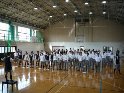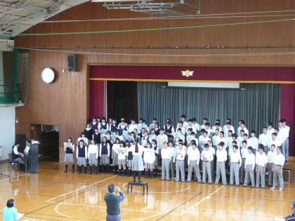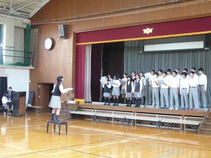 最初に全員で声だしをかねて「大切なもの」を歌い、その後ステージを使ってで学年合唱練習です。初めて聴いた曲でしたが、いいですねぇ〜〜〜。当日期待してます。