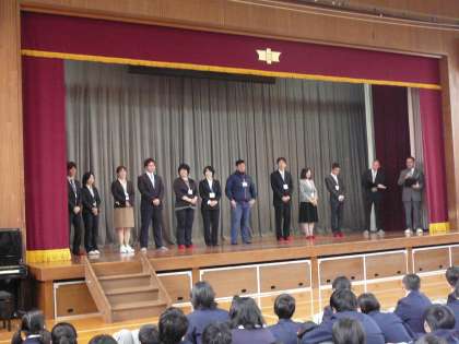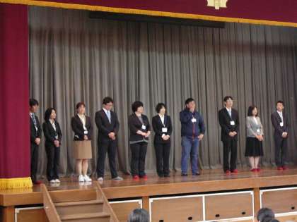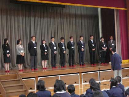 まずは着任式。先日の離任式で11名の教職員の方々とお別れをしましたが、新たに11名の教職員に着任いただきました。生徒会長の温かい歓迎の言葉ありがとう!