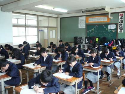 3クラスとも、鉛筆の「カリカリ」という音以外聞こえないくらい、集中した雰囲気で取り組んでいます。持てる力を全〜部出し切ってくださいね!