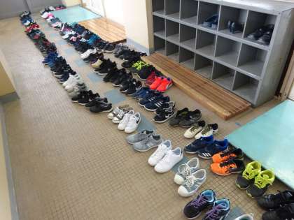 整然とならべられた靴。きちんと整列し、静かに先生方の話を聴きました。