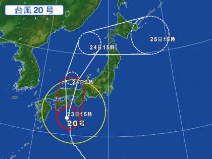台風20号接近に伴う大雨・暴雨風警報