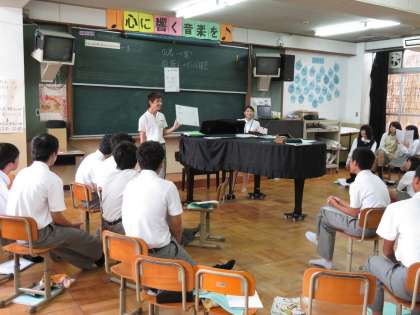 「歌詞の内容を考えて、歌い方が工夫できるようになる」という本時の目標を目ざし、選択曲「君とみた海」の「君」・「海」のイメージについて、生徒の意見を発表・集約し、クラスとして同じイメージで歌うという授業展開でした。
